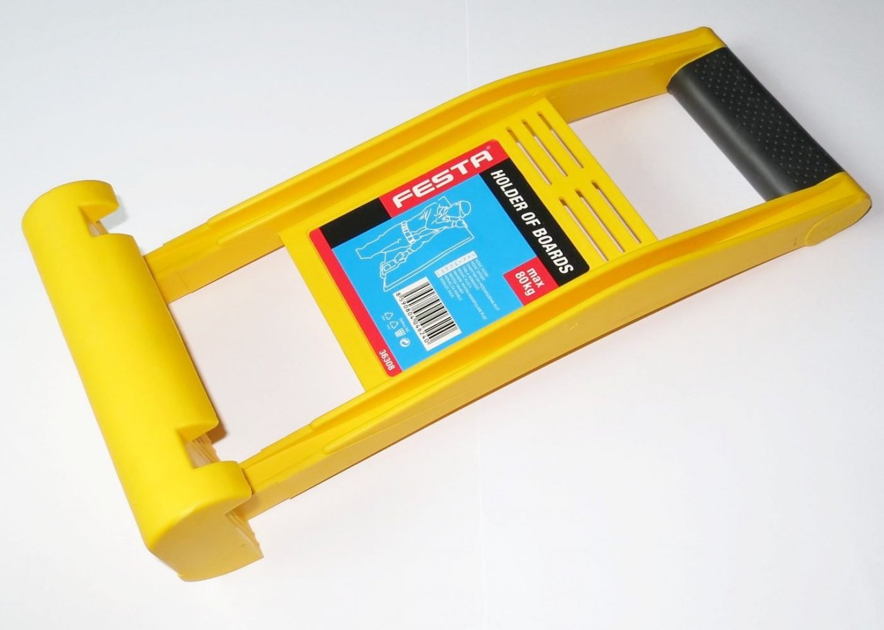 Nosič desek je určen zejména pro přenášení sádrokartonových, osb, dřevěných a dalších typů desek. Tento držák můžete využít také při manipulaci s nábytkem (například při stěhování). V případě použití u těžších břemen se váha velmi znatelně rozloží.